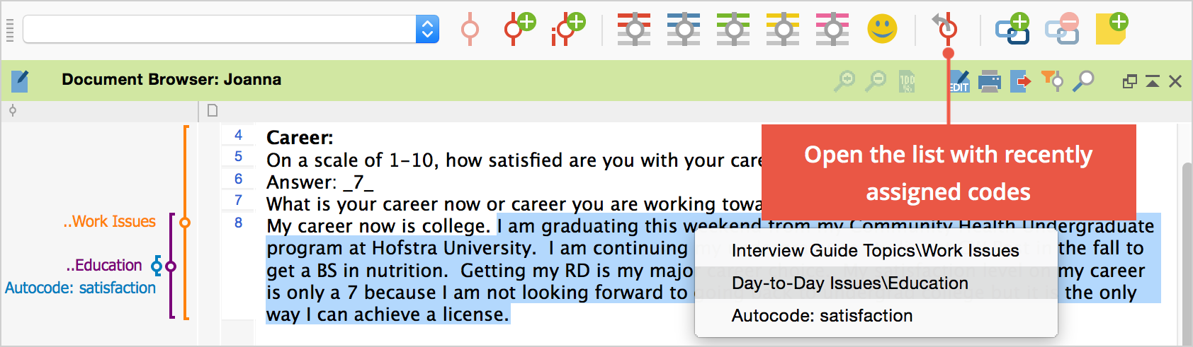 Please note that the undo-function will only undo the coding of segments. It will not undo the deletion of a coded segment, nor will it undo the transfer of a coded segment from one code to another.