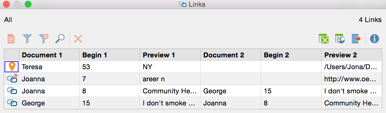 With the help of these geolinks you can also show geographic aspects of sociological research data. The use of georeferencing tools, especially Google Earth™, in combination with software for qualitative data analysis is fairly new. Cesar Cisneros, professor of sociology at Universitaria Autonoma Metropolitan Iztapalapa in Mexico, was one of the first to use this technique. In 2006, he used geolinks in MAXQDA for a research project in South America. MAXQDA includes a column in the “Document Browser” specifically for these geolinks. To create one, follow these steps: