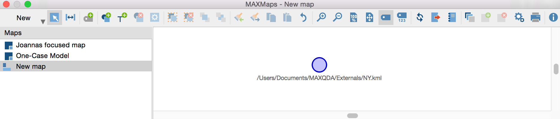 All MAXQDA objects inserted in MAXMaps can be connected to a geolink. As with the free objects mentioned above, a blue ball appears in the top right of object’s frame when it is clicked on. Double-clicking on the ball opens Google Earth™ and takes you to the assigned location.