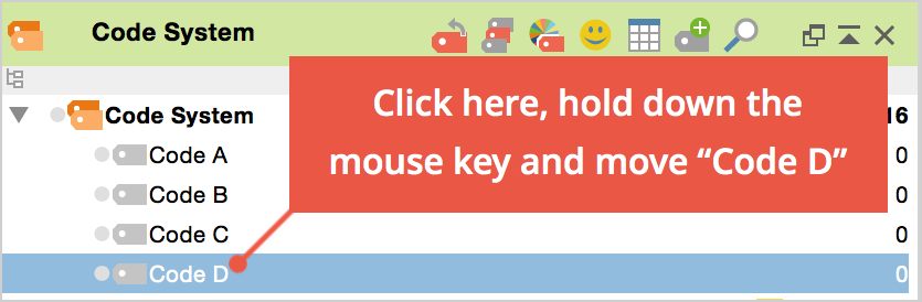Changing the structure of the category system is not difficult. All codes can be moved with the mouse and the drag-and-drop function.