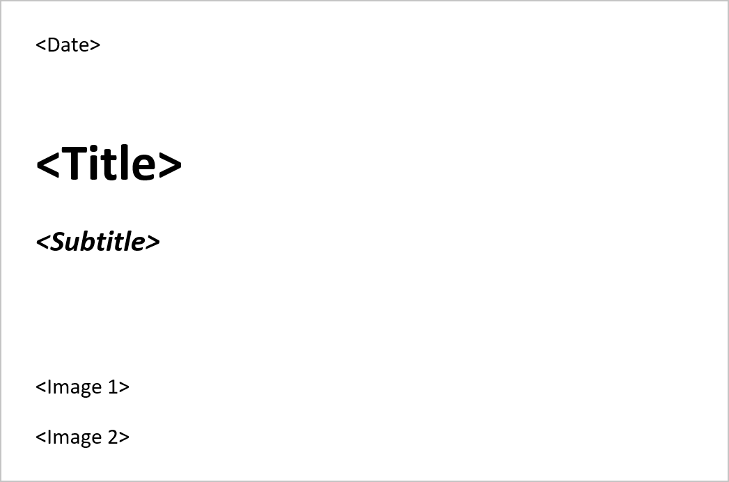 The Word templates contain placeholders, for example for titles and subtitles written as <Title>. These placeholders can be modified just like any other content in a Word document. The position of the placeholders can also be modified as desired.