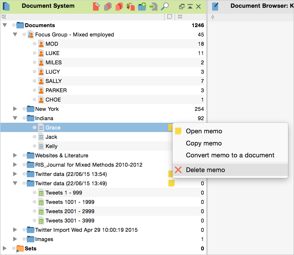 You can duplicate a memo by right-clicking on it and selecting Copy Memo. Then, right- click again in a space where a memo can be inserted – such as in the memo column or in the Document or Code System – and select Paste Memo.