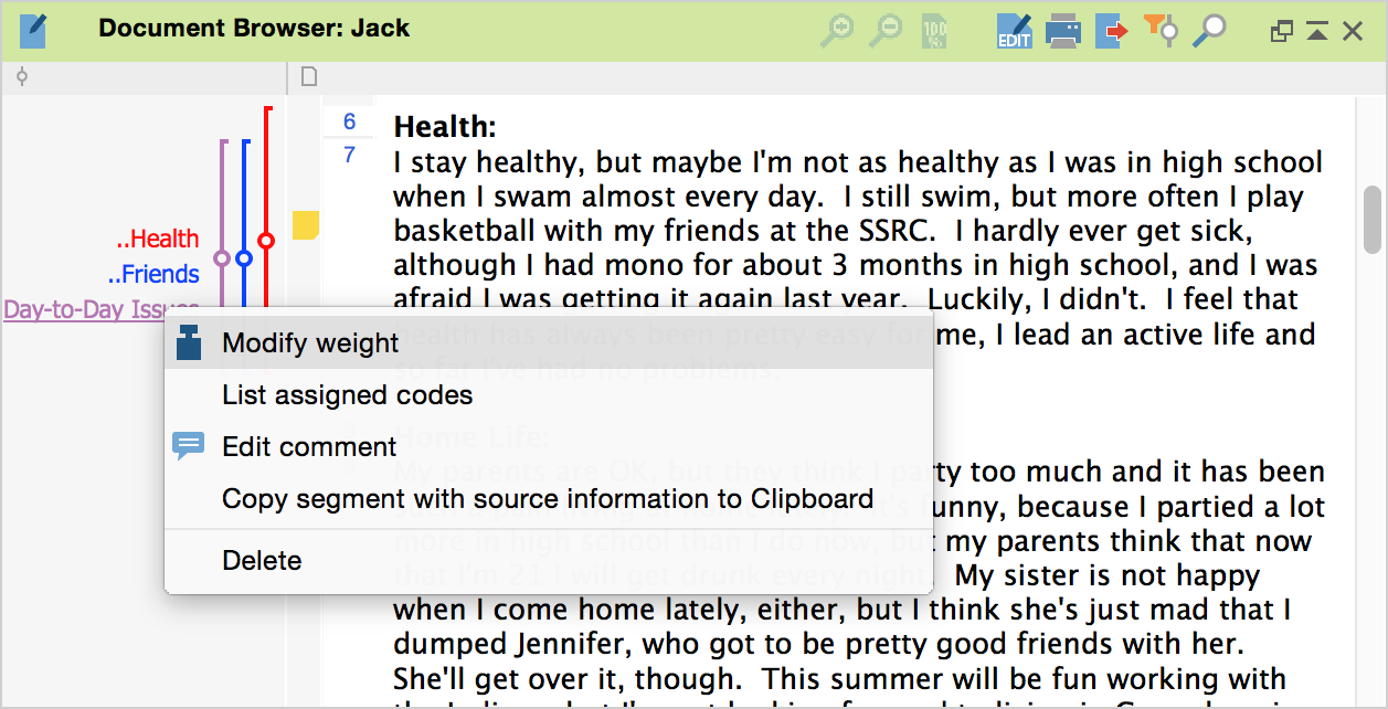 1. Right-click on the coding stripe for the coded segment that you would like to alter the weight score for.